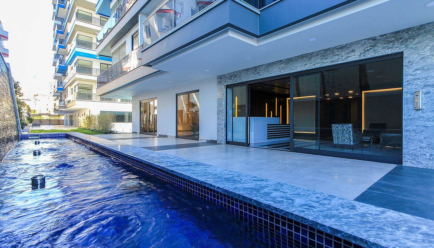 Mahmutlar, ein Küstenbezirk von Alanya, zeichnet sich durch seine natürlichen Strände und eine lebendige lokale Szene mit Cafés, Restaurants und Märkten aus. Diese strandnahe Immobilie befindet sich 12 Kilometer vom Stadtzentrum Alanyas und 34 Kilometer vom nächsten Flughafen entfernt, was sie sowohl für Bewohner als auch für Besucher gut erreichbar macht. Die Anlage besteht aus zwei Blöcken mit insgesamt 174 Wohnungen und bietet eine Vielzahl von Annehmlichkeiten wie Zugang zum Strand, Wanderwege und Freizeiteinrichtungen wie einen Minigolfplatz.