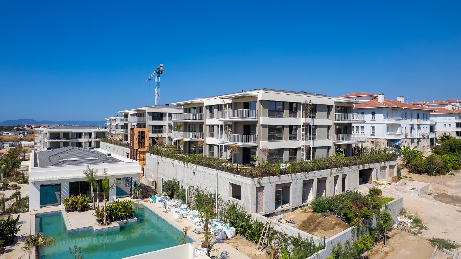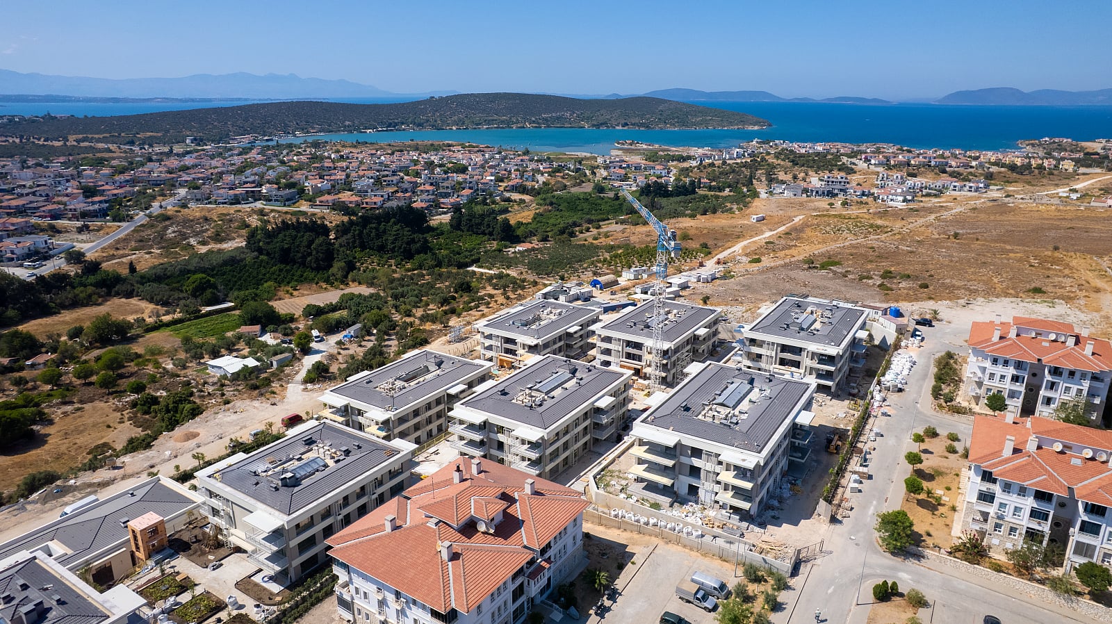 چشمه، یک منطقه ساحلی در ازمیر، ترکیه، به خاطر هوای پاک و سواحل پرچم آبی خود مشهور است و به عنوان مقصدی محبوب برای بازدیدکنندگان محلی و بینالمللی شناخته میشود. این ملک بخشی از یک مجموعه محصور است که ۱۵,۶۵۰ متر مربع وسعت دارد و شامل هشت بلوک با مجموع ۱۳۲ واحد مسکونی میباشد. این مجموعه تنها ۲۰۰ متر از بازارهای محلی و ۱.۵ کیلومتر از ساحل فاصله دارد و به خوبی در موقعیتی قرار دارد که از امکانات غذاخوری و تفریحی منطقه بهرهبرداری کند، از جمله نزدیکی به مرکز موجسواری بندر آلاچاتی و یک مارینا که ۱۰ کیلومتر دورتر واقع شده است.